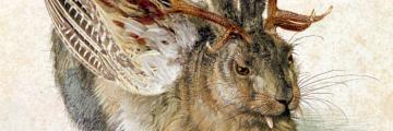 (imagem: Representação de um Wolpertinger (paródia de Rainer Zenz da aguarela A Lebre, de Albrecht Dürer, 1502)